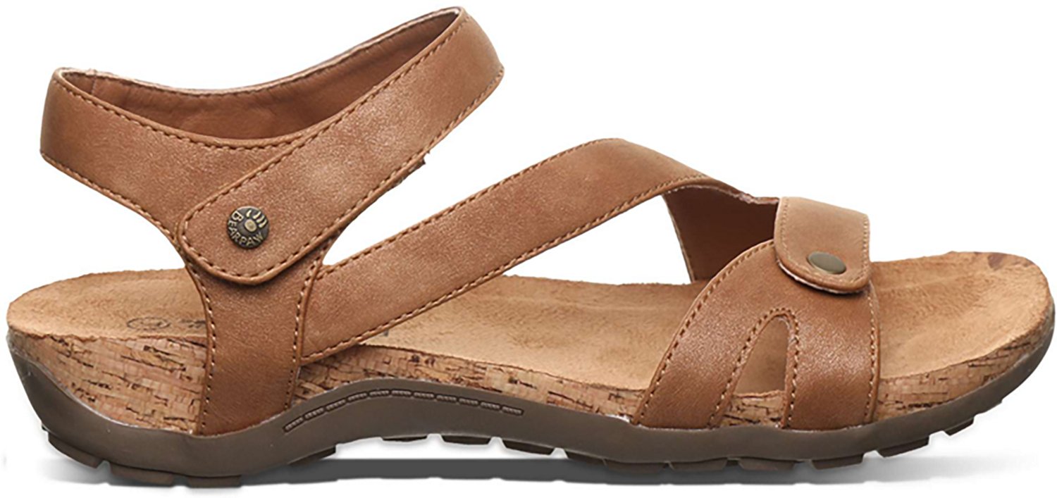 Step out in style with the Bear Paw Women's Solana Sandals. The faux leather linings help keep you cozy, and the cork-wrapped polyurethane (PU) midsoles help to keep your feet protected. The adjustable ankle strap with hook and loop closure makes putting on or removing the sandals easier, and the faux leather uppers are built for regular use.