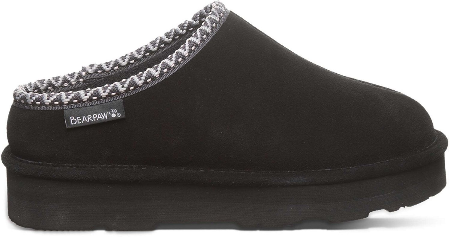 Look stylish sporting the Bearpaw Women's Mensartis Slippers. The slip-on design let you slip on and off the slippers with ease, and the suede uppers provide comfort. The ankle trim and platform design add style.