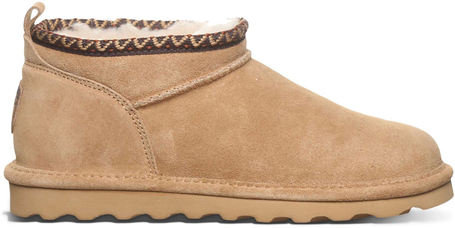 Show off your style in the Bearpaw Women's Super Shorty Deco Boots. These ankle-height booties have durable and sleek suede uppers and webbing tape accents for a touch of flair. Cushioned insoles and rubber outsoles provide a lightweight and comfortable feel, while the water-repellent finish and wool linings help your feet be comfy and dry.