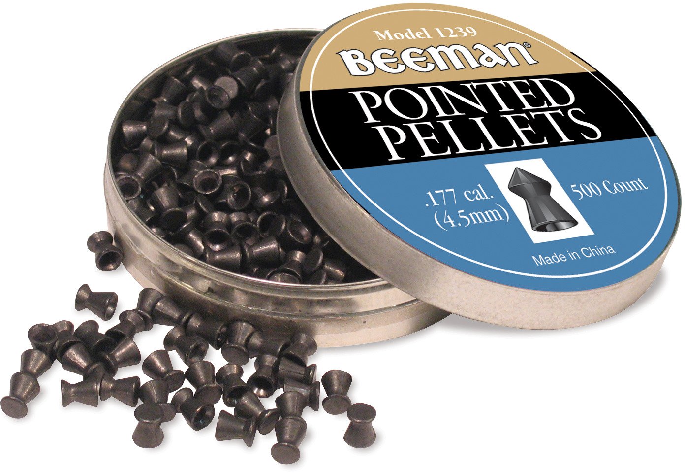 Stock up on air gun ammo with the Beeman .177 Caliber Pointed Pellets 500-Pack. Contained in a tin, the 500 all-purpose pellets are precision made with a sturdy, pointed tip.