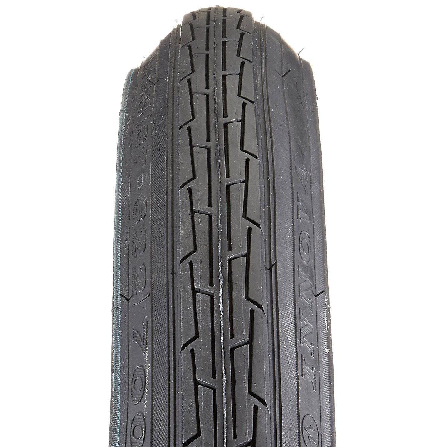 Inverted tread offers a sure grip while reducing rolling resistance for fast pedaling on pavement
