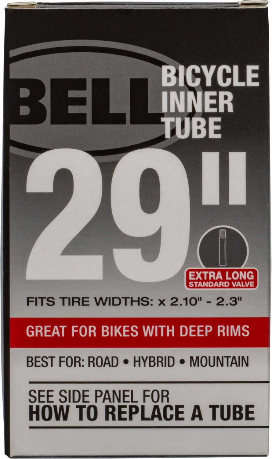 The Bell high-quality standard inner tubes are constructed of mold-cured rubber for a consistent side-wall, which prevents high-pressure blow-outs. Available in a full range of major tube sizes. Valve type & length: Schrader; 60mm with cap. High quality, reliably tested inner tube. This tube works great for Road and Mountain bike tires. Fits tires 29"x2.10-2.25".