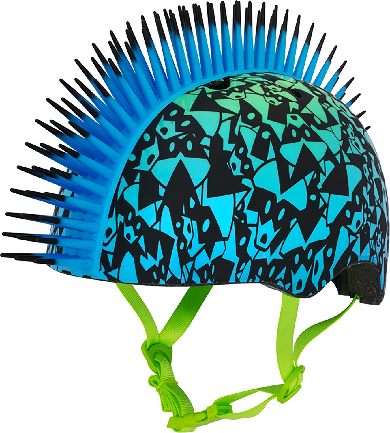 Let your young rider showcase his style with help from the Bell Boys' Bandit Blast Bike Helmet. This bike helmet is designed with a bold, 3-D mohawk and explosive graphics that help separate it from bland options, and the fit system and cooling vents help ensure long-lasting comfort as they ride.