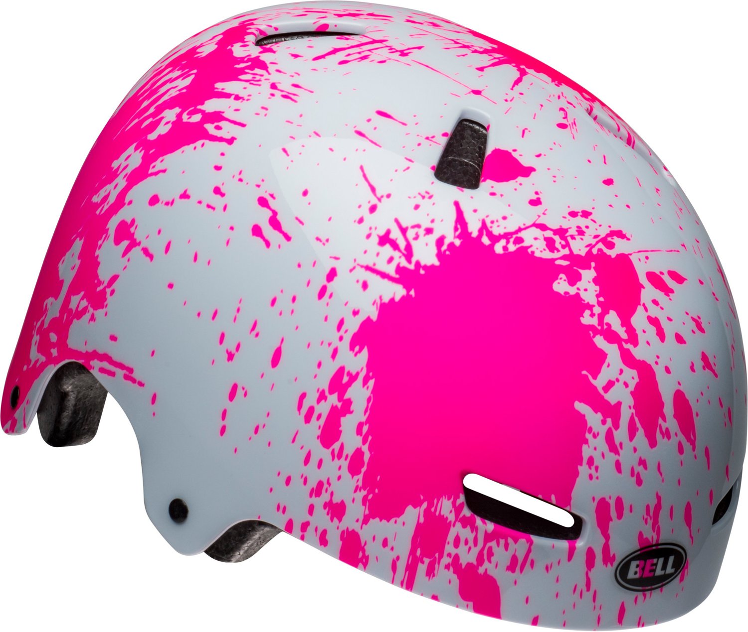 Kids can safely show their skills in the Bell Girls' Splatter Impulse Multisport Helmet. Its hardshell construction provides rugged protection and is vented to keep her head cool. The adjustment dial and side squeeze buckle allow for a secure yet comfortable fit, while the bold splatter graphics create a fun flair she's sure to love.