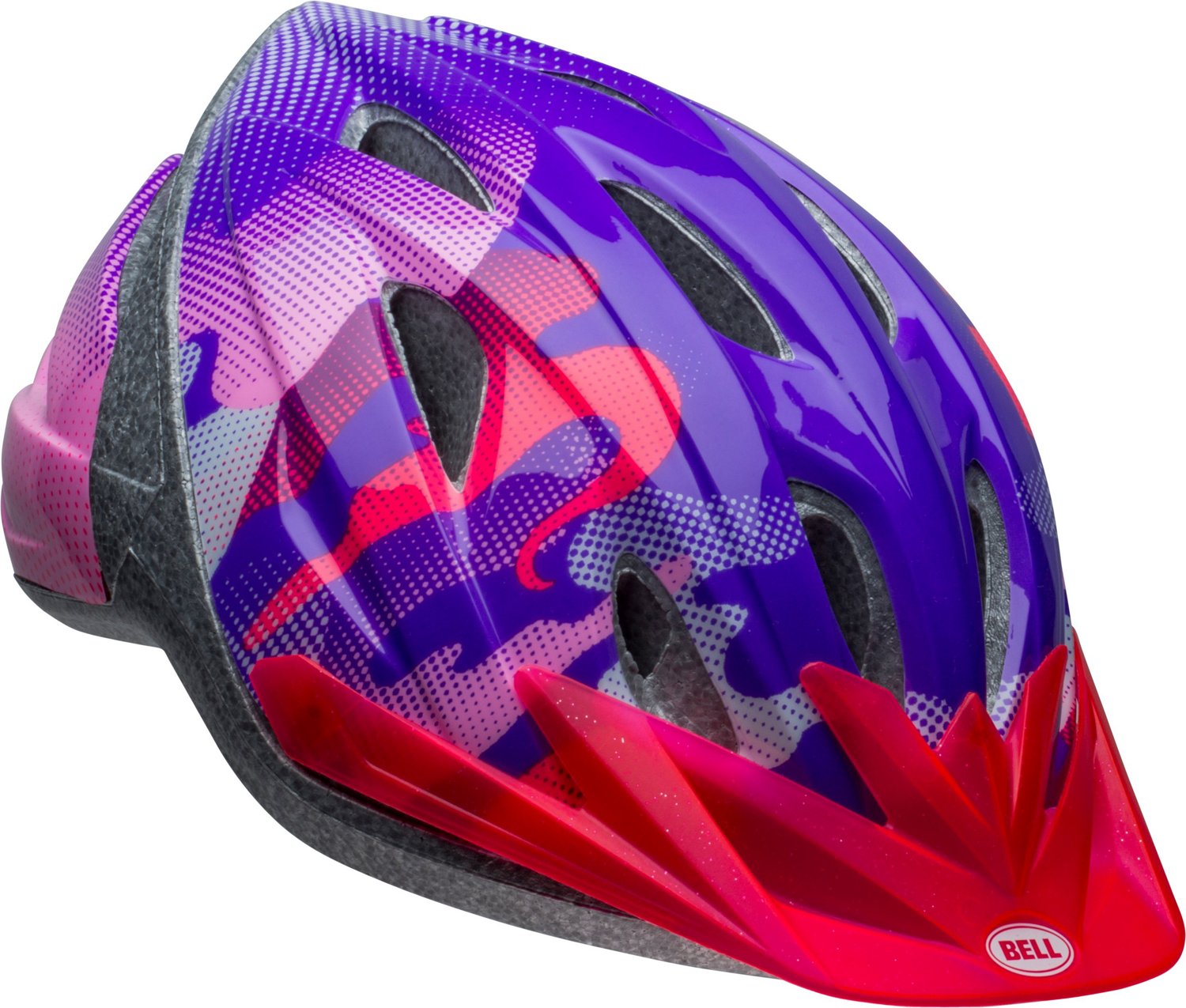 Keep your daughter safe while riding with the Bell Girls' Surge Bike Helmet.This helmet features 19 vents for air ventilation. The True Fit system allows for a 1-step adjustments, while the visor blocks sunlight and the elements.