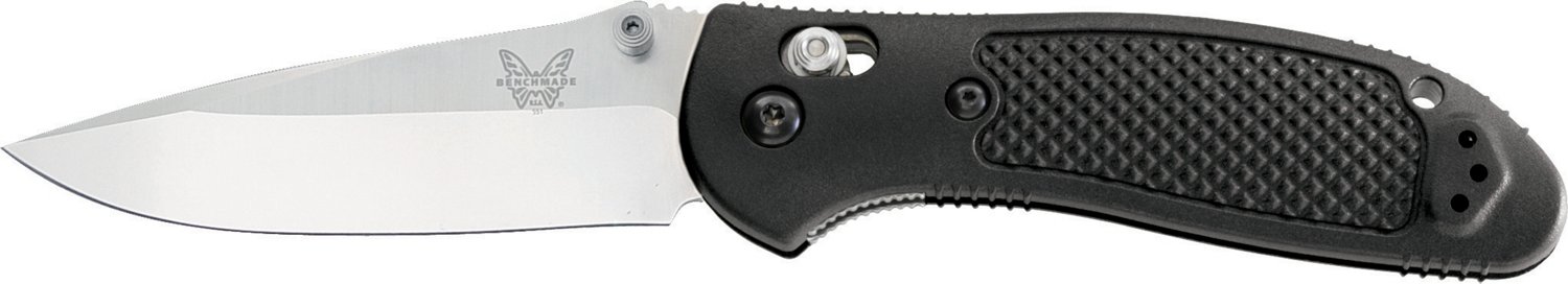 The Benchmade 551 Griptilian Folding Knife has a glass-filled nylon handle for a sure grip and features a modified, drop-point blade. The AXIS® locking mechanism helps ensure safe operation, and ambidextrous dual thumb studs allow easy opening. 3.82 oz. 3.45" blade length. 8.07" overall length. Made in USA.