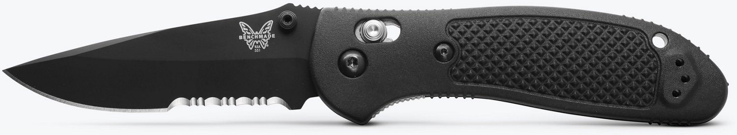 A comfortable grip combines with a strong blade for everyday use with the Benchmade Griptilian Serrated Folding Knife. The 3.45-inch stainless steel blade is serrated to saw and chop through objects in your way, and the glass-filled nylon handle has a comfortable ambidextrous grip for convenient use. The folding drop-point blade is easy to store, and the lanyard hole makes it easy to attach and carry with you on your belt or backpack.