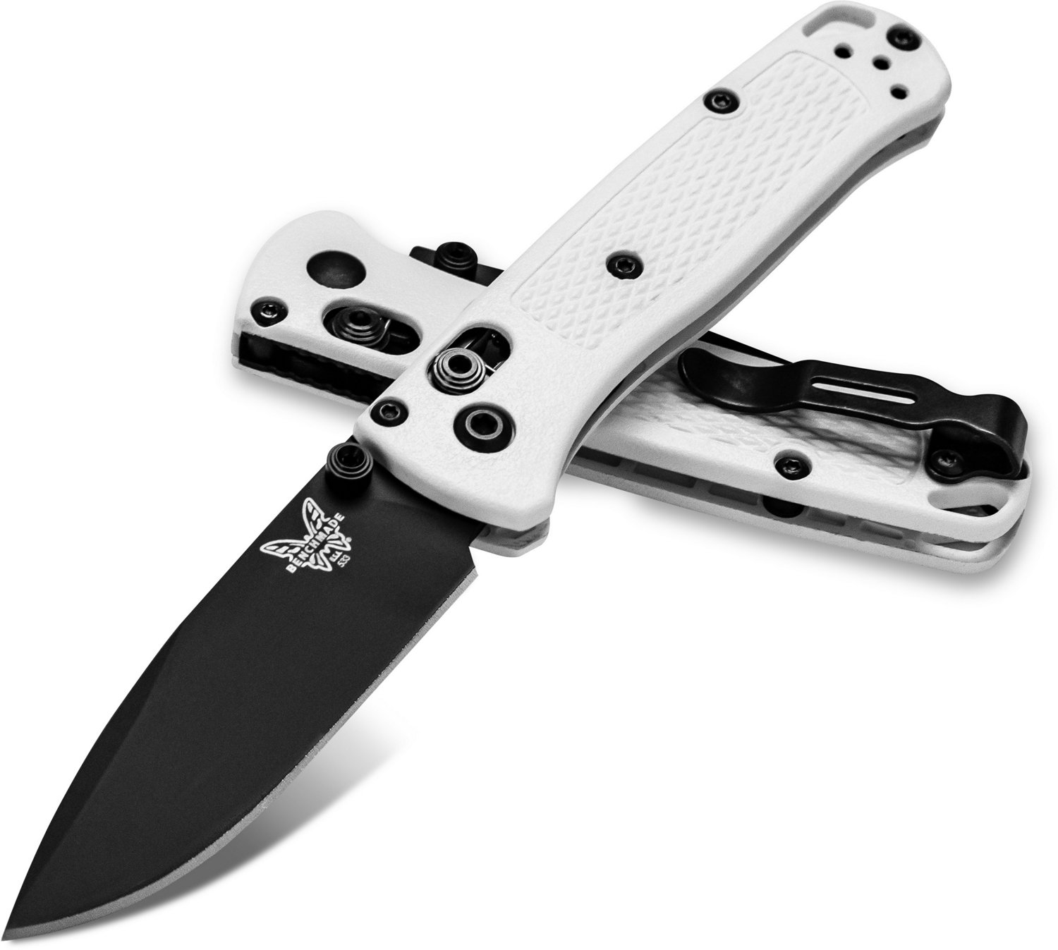 The Benchmade Mini Bugout Drop Point Knife features a folding stainless steel drop point blade that is ideal for everyday use and utility. A grivory handle is molded for easy gripping and features a lanyard hole and belt clip. The small size fits easily in a mint tin or pocket, making this knife an ideal on-the-go companion.