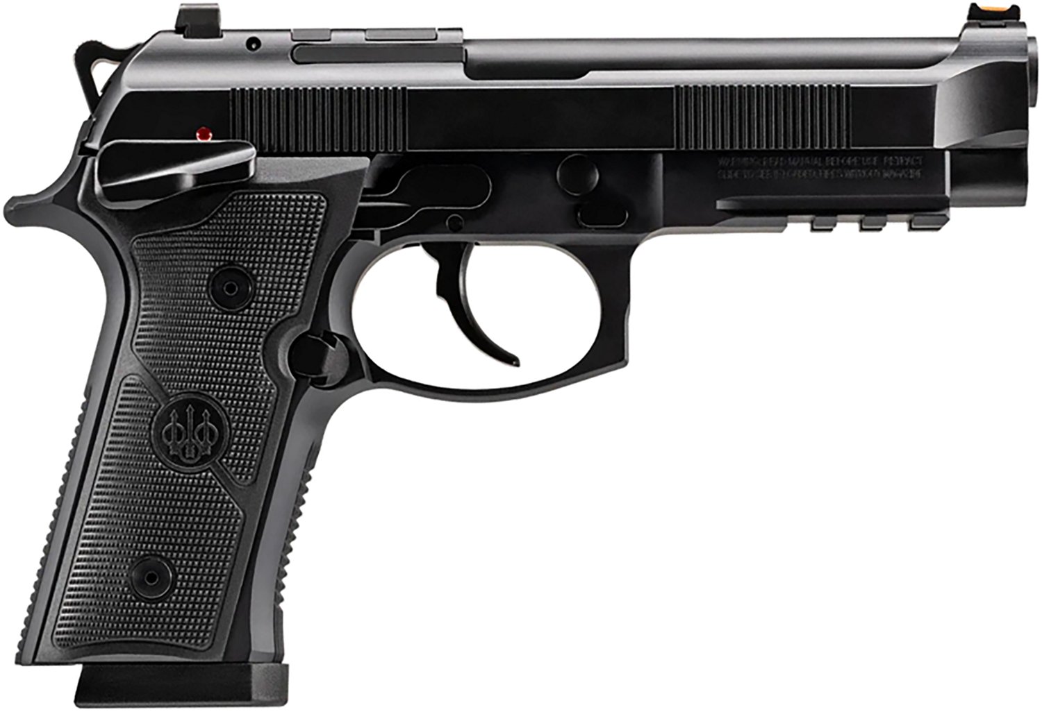 The Beretta 92GTS 9mm Pistol has a capacity of 18+1 rounds and a 4.7-inch steel barrel. This optics-ready handgun has a serrated steel slide and a Picatinny rail on an aluminum frame with a Cerakote finish. It has a textured grip, a fiber optic sight in the front and a serrated sight in the rear.