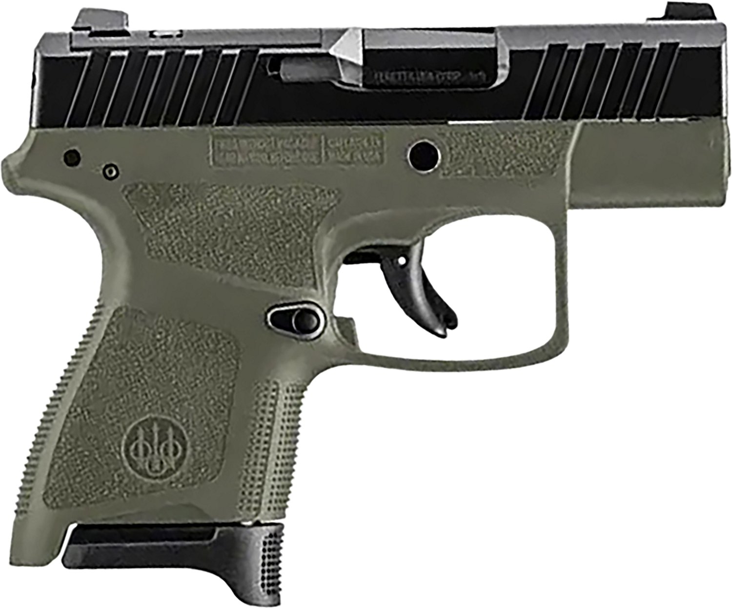 The Beretta APX A1 Carry 9mm Pistol is a microcompact striker-fired handgun with a 3.3-inch blued steel barrel and a capacity of 8+1 rounds. It has a polymer frame and grip, a serrated steel slide and firing pin and trigger block safeties. It also features a white dot sight in the front and a blackout sight in the rear.