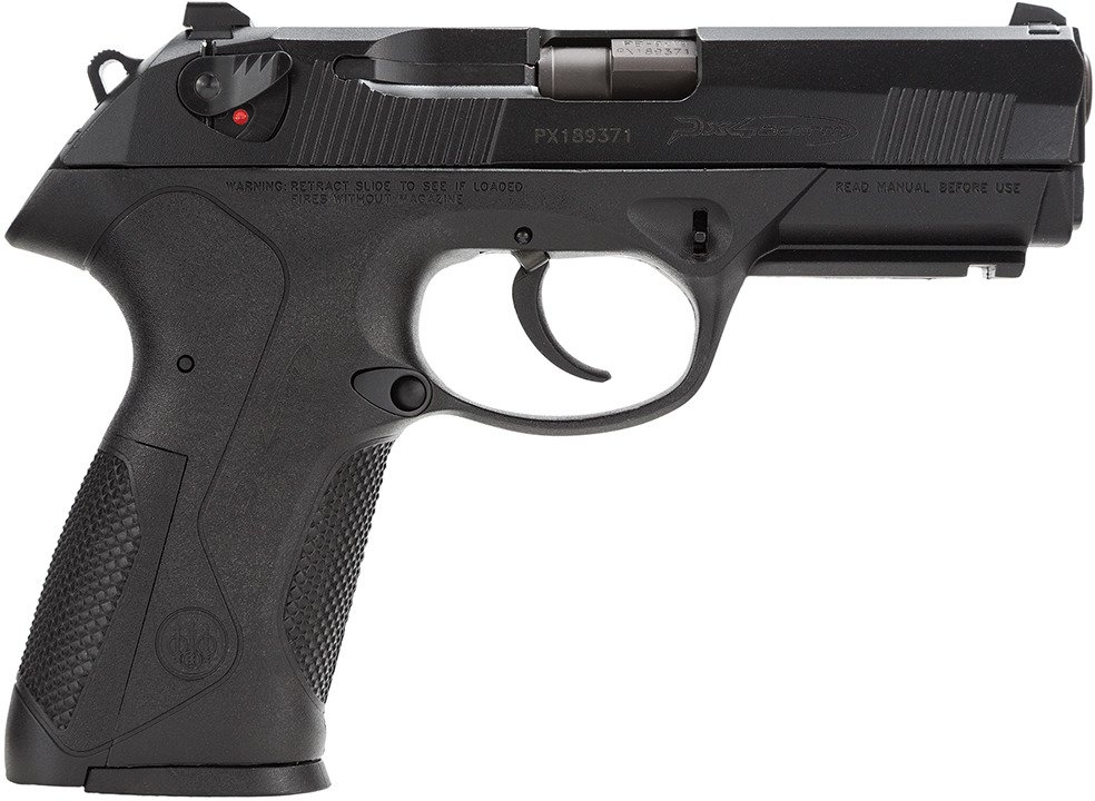 Featuring a snag-free, polymer frame and a drop-free magazine, the Beretta PX4 Storm 9mm Luger Semiautomatic Pistol provides a 10+1-round capacity. The 4-inch rotary barrel features steel construction with a chrome lining, and the handgun boasts a 3-dot sight system with adjustable windage. Ambidextrous safety. Automatic firing pin block.