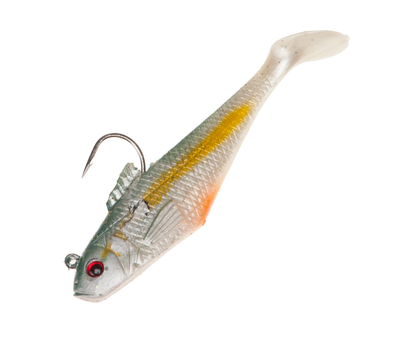 Designed with 3-D eyes and holographic inserts, the Berkley® Swim Shad 3" Soft Baits 5-Pack offer a realistic look that walleyes can't resist. The prerigged soft baits are designed with vibrating tails for movement and PowerBait scents and flavors to draw the attention of fish from far distances. Trayed bags. Made in USA.