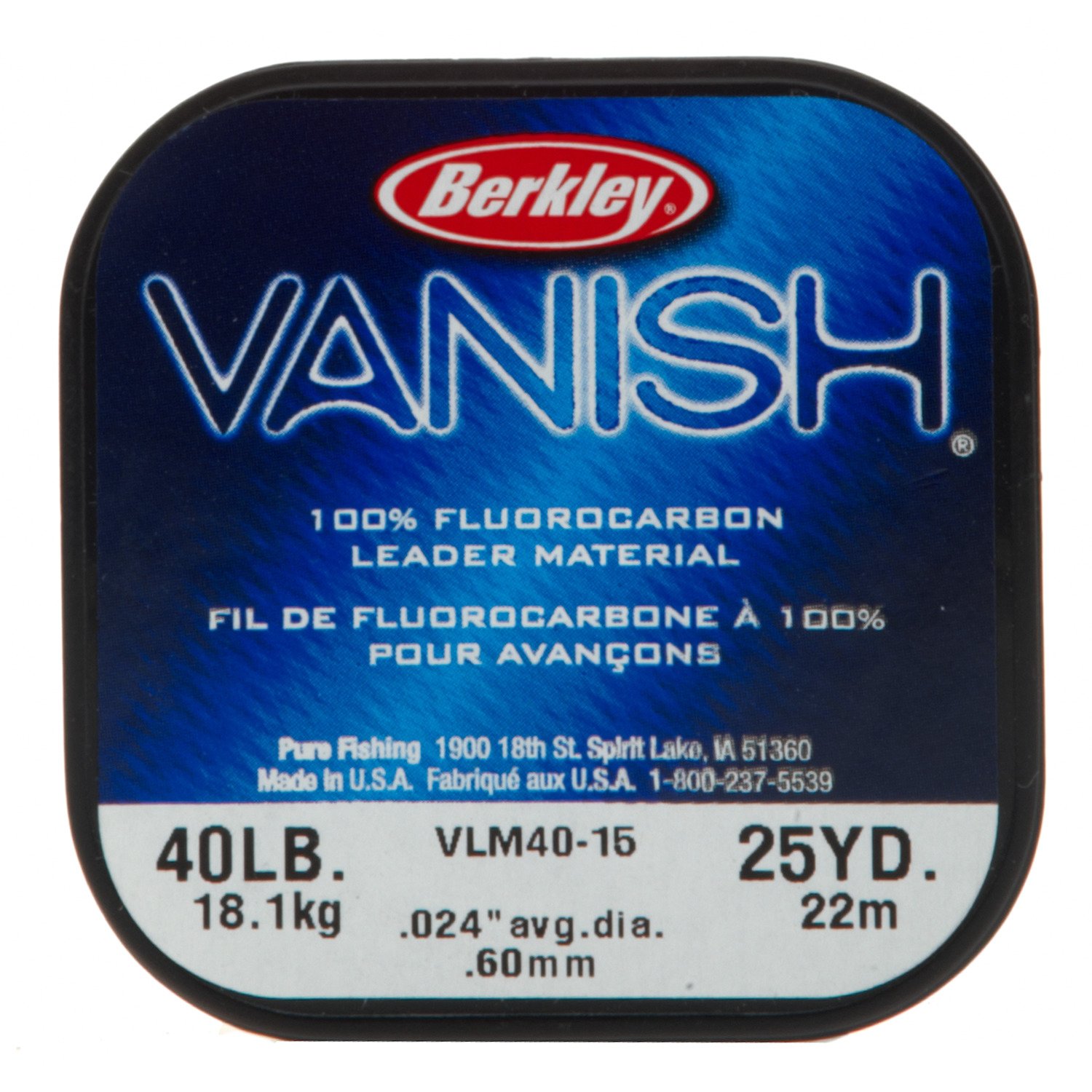 Enjoy dependable performance with the Berkley® Vanish® 25-Yard 100% Fluorocarbon Leader. The 100% fluorocarbon leader material is strong and resists abrasion.