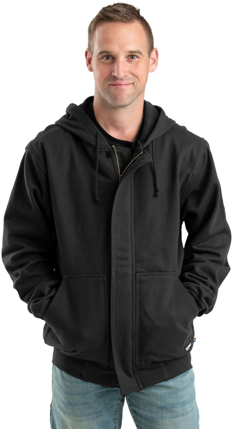 Keep yourself safe while staying warm with the Berne Men's Flame Resistant NFPA 2112 Hooded Sweatshirt. The soft cotton fleece fabric is flame resistant, and the double-stitched seams stand up to tough jobs. The rib-knit cuffs and drawstring adjustable hood provide a snug fit against the chill.