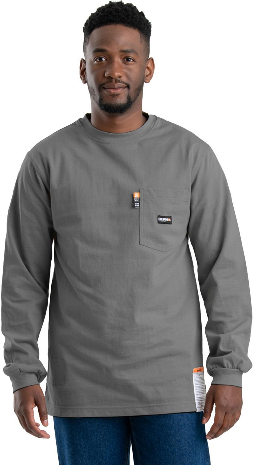 Protect yourself at work with the Berne Men's Flame Resistant T-shirt, which features flame-resistant capabilities. Made with cotton, this long-sleeve shirt has a left chest pocket and side seams designed to reduce twisting.