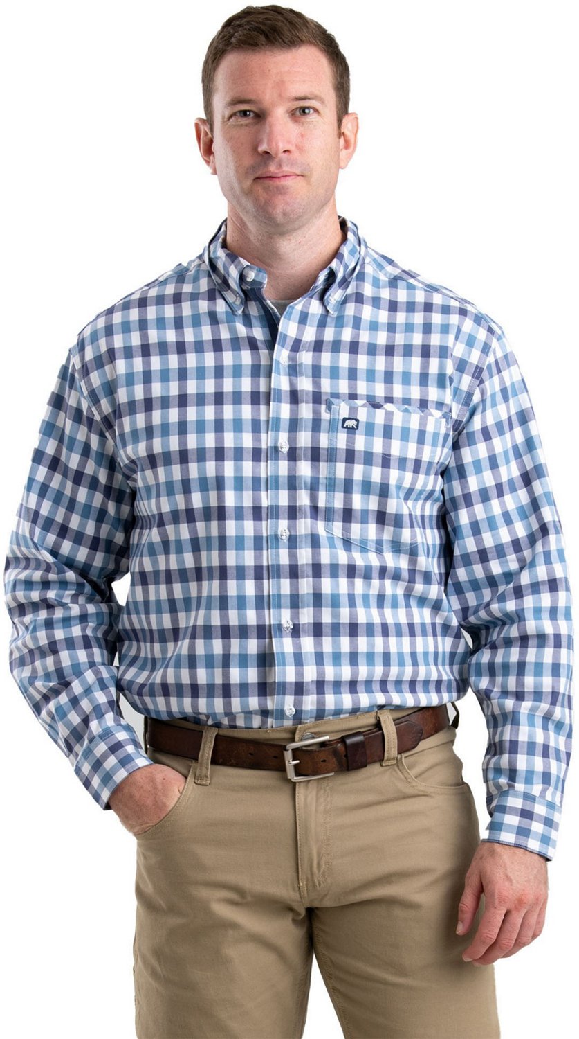 Elevate your workplace look with the Berne Men's Foreman Flex Plaid Long Sleeve Button Down Shirt. Flex fabric allows a natural range of movement for day-long comfort, while the plaid print adds everyday style.