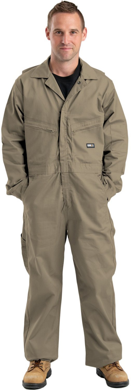 Stay safe and clean on the job with the Berne Men's Flame Resistant Unlined Deluxe Coveralls. These coveralls feature a cotton/nylon fabric blend that is flame resistant, as well as Flame Resistant zippers on pockets to help keep you protected. Multiple pockets allow you to keep tools and accessories within reach.