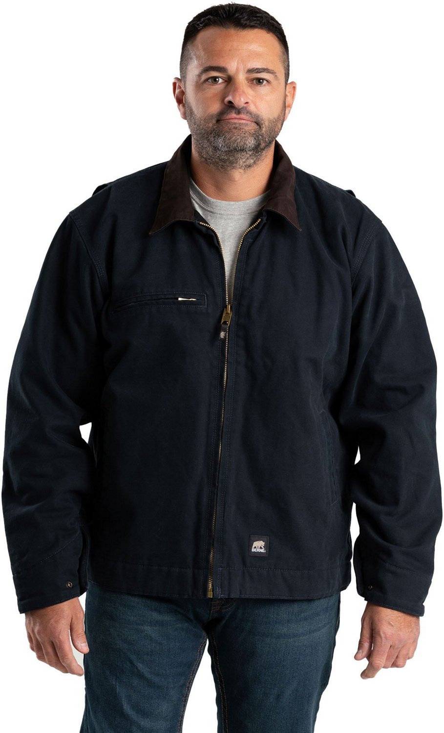 Stay warm on a chilly day with the Berne Men's Highland Washed Gasoline Jacket. The sturdy canvas shell is triple stitched for durability and lined with heavyweight fleece for extra warmth. Adjustable sleeve cuffs and side tabs ensure a comfortable fit, while pleated elbows and an action back help you move freely.