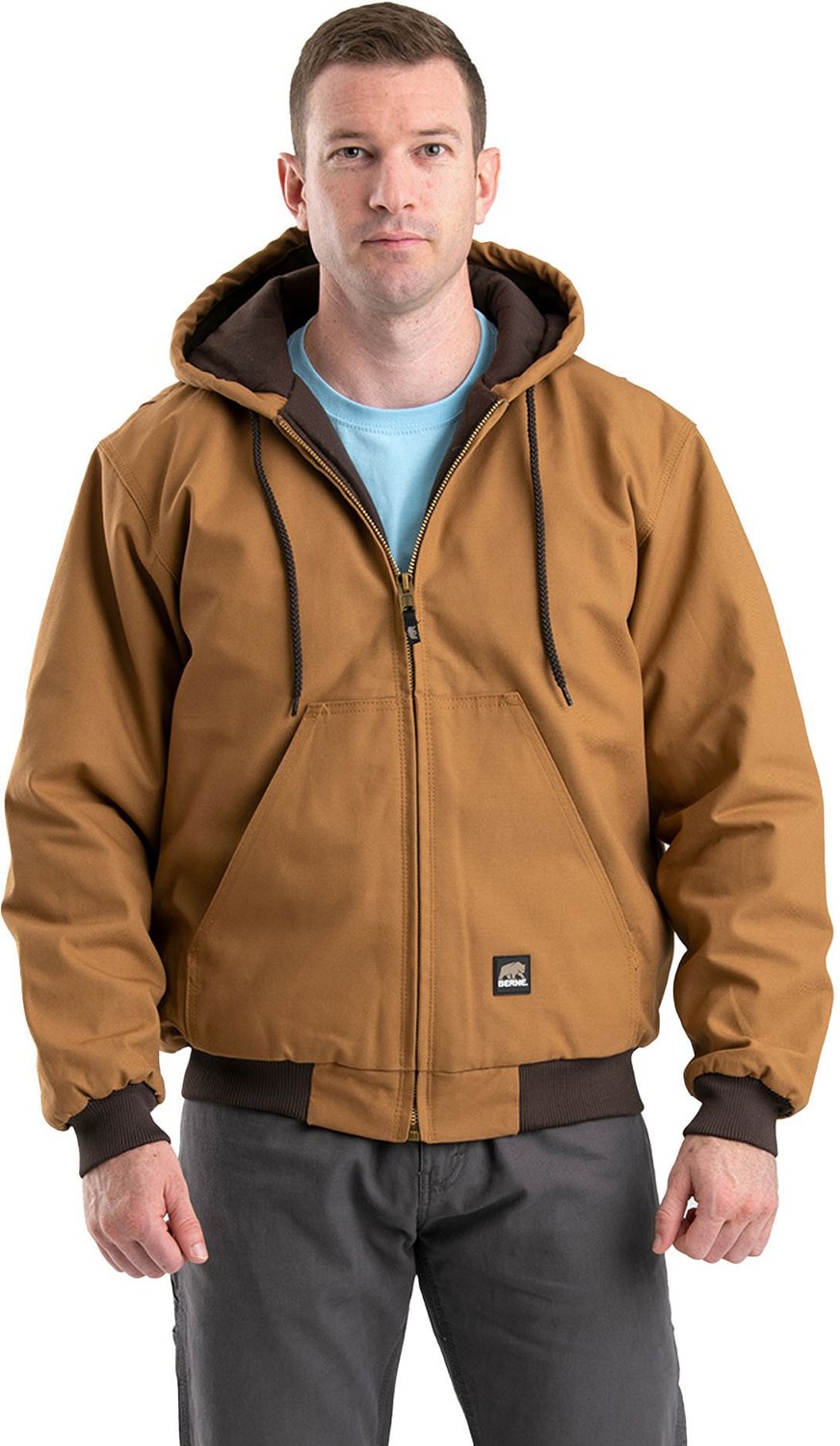 Stay protected against the elements with this Berne Men's Original Hooded Jacket. Cotton duck fabric and brushed tricot body materials feature a water-repellent finish to shield against moisture. Keep essentials within reach with the 3 interior and 2 exterior pockets.