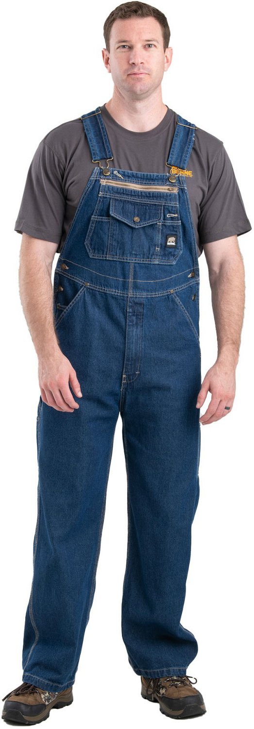 Great for carpenters and those who need to keep tools within reach, the Berne Men's Original Unlined Washed Bib Overalls feature a hammer loop, side utility pockets and reinforced back pockets. The overalls are made of cotton denim for strength and comfort, and triple-needle stitching at the seams helps them last.
