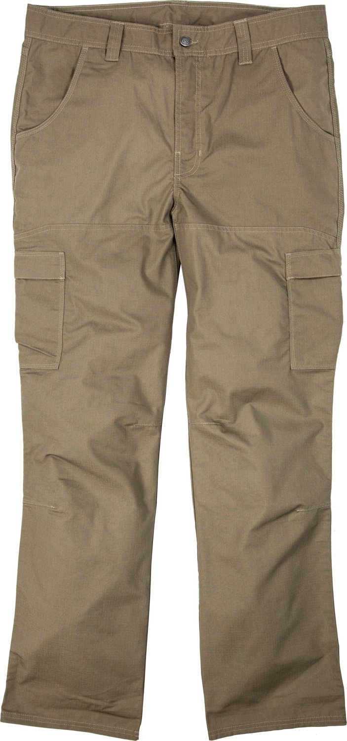 Designed for tough work environments, the Berne Men's Ripstop Cargo Pants are able to repel oil and water. Triple-needle stitching at the main seams helps the pants stand up to consistent use, and the articulated knees enable mobility. The pants are made of cotton and polyester for comfort.