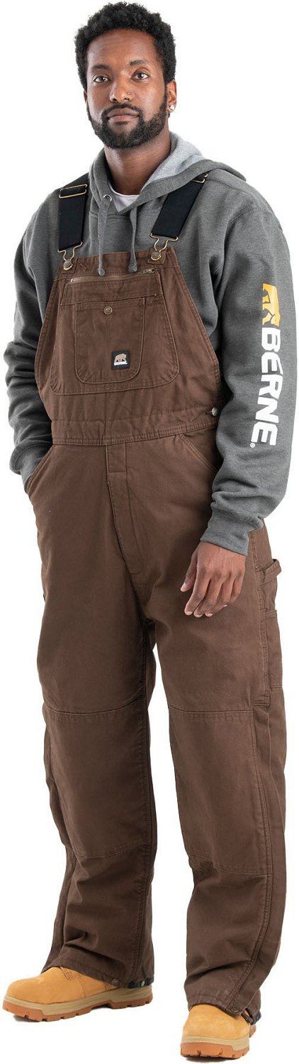 With adjustable leg snaps and outside storm flaps, the Berne Men's Traditional Washed Bib Overalls help keep you protected on the job site. The overalls feature reinforced knees, a hammer loop and multiple pockets to meet your needs.