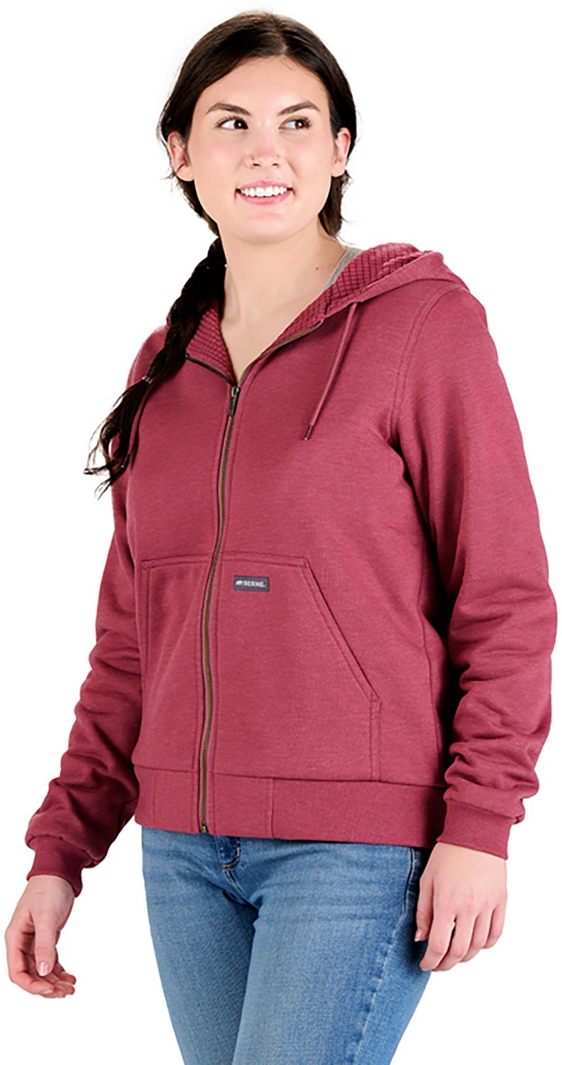 Warmth and comfort are the order of your day when you wear this Berne Women's Heritage Hoodie on your next outdoor excursion. With a shell made of soft cotton-polyester fleece, and sporting a polyester ripstop fleece lining, it provides the ideal combo of a pleasant feel and go-anywhere durability. The full-zip closure maintains a cozy fit all outing long.