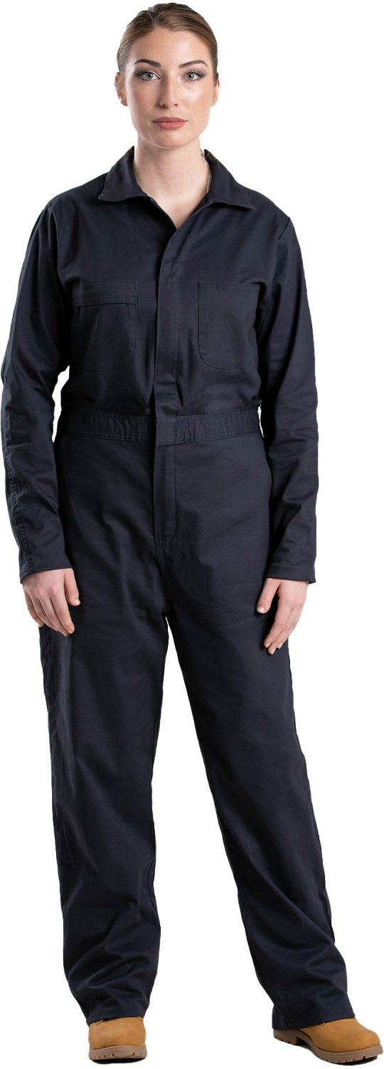 Work in clothes you can rely on while wearing the Berne Women's Highland Flex Cotton Unlined Coverall. The cotton twill construction is triple-stitched and reinforced with bar tacks for extra strength. Elastic waistband inserts and a pleated back give you room to move comfortably, while plenty of pockets keep your tools and essentials convenient.