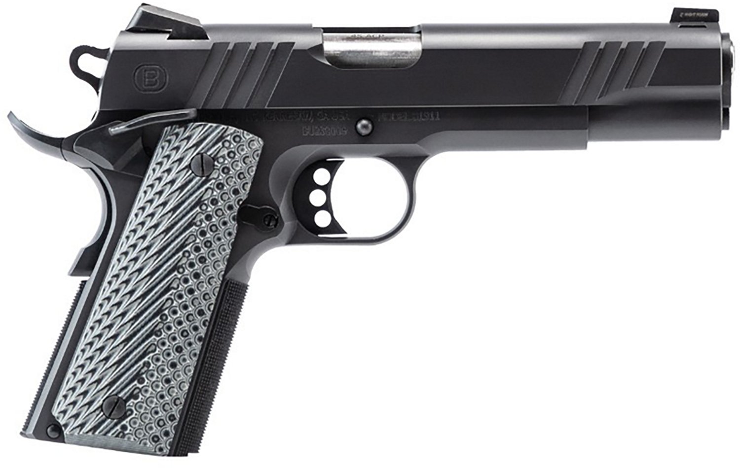 The Bersa 1911 .45 ACP Pistol is single action and has an 8+1-round capacity. It's built with a 416 stainless steel frame and slide and a VZ grip. Dovetailed tritium night sights and an ambidextrous thumb safety complete the design.