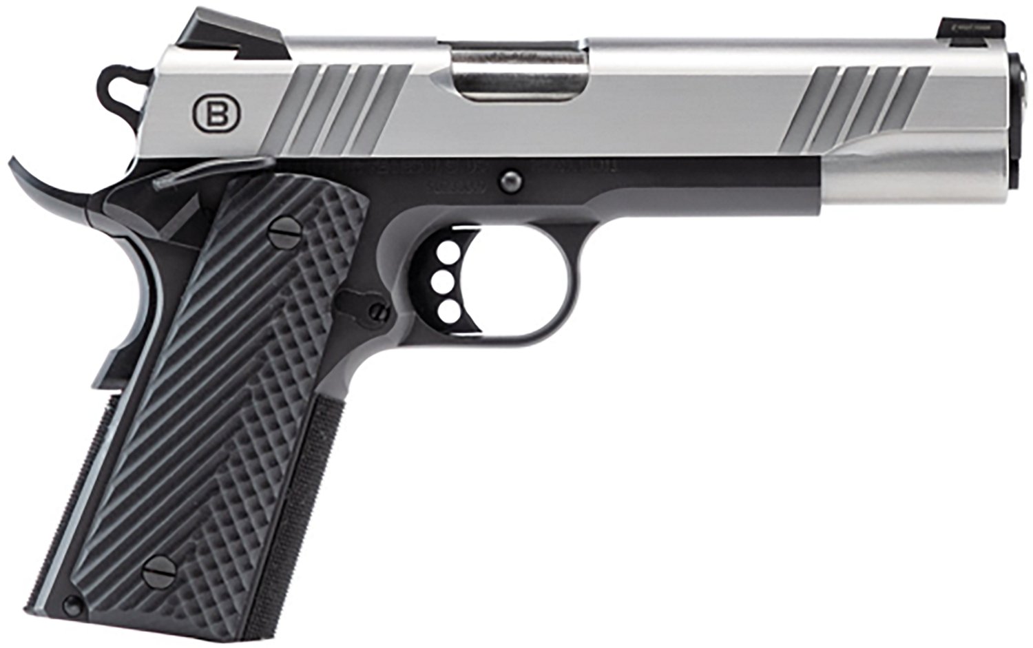 The Bersa 1911 .45 ACP Pistol is single action and has an 8+1-round capacity. It's built with a 416 stainless steel frame and slide and a VZ grip. Dovetailed tritium night sights and an ambidextrous thumb safety complete the design.