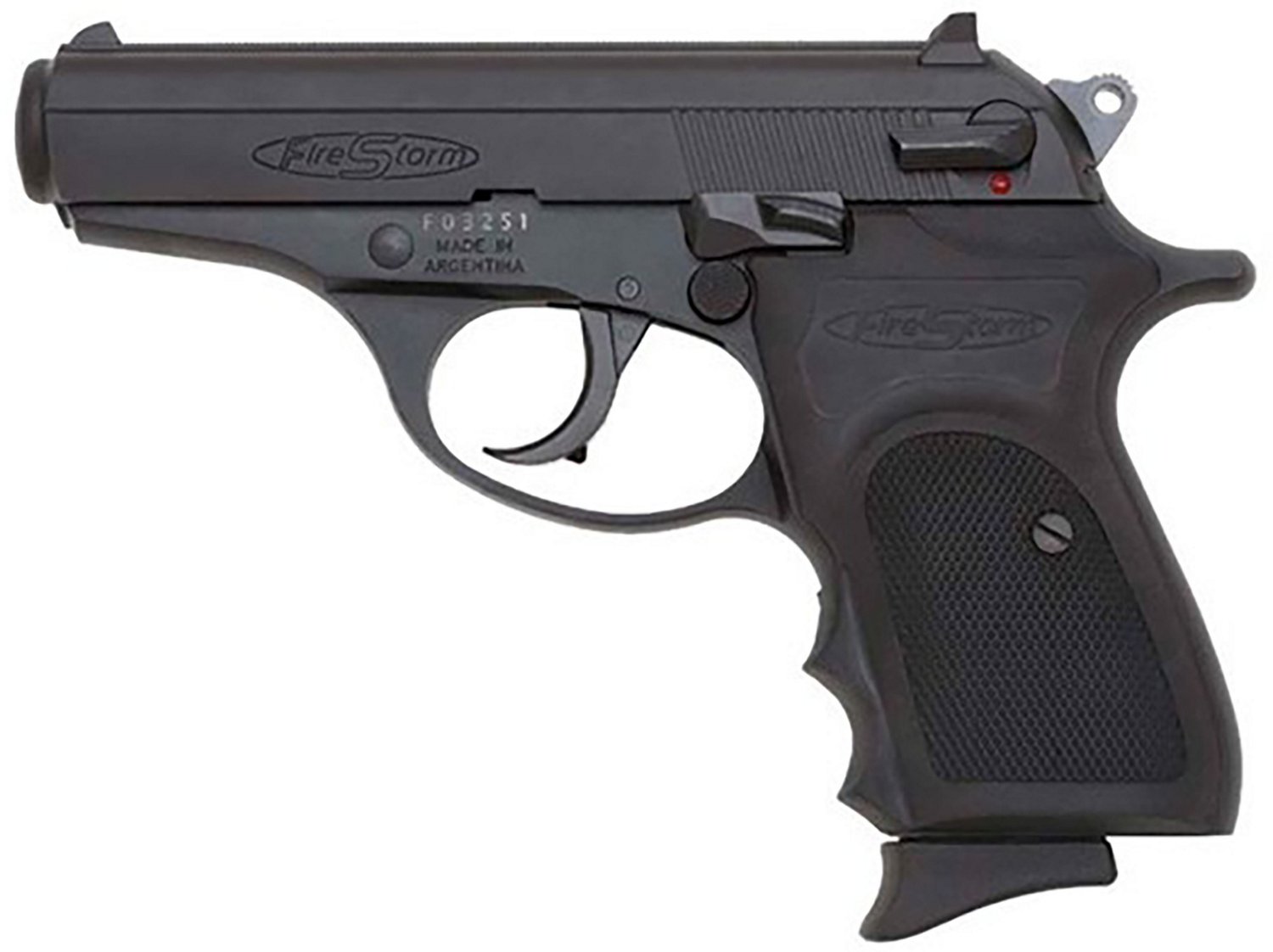 The Bersa Firestorm CA Compliant .380 ACP Pistol is a micro-compact pistol with hammer fired action and a full metal body. It comes equipped with a manual safety, dovetail front sight and combat rear sight.