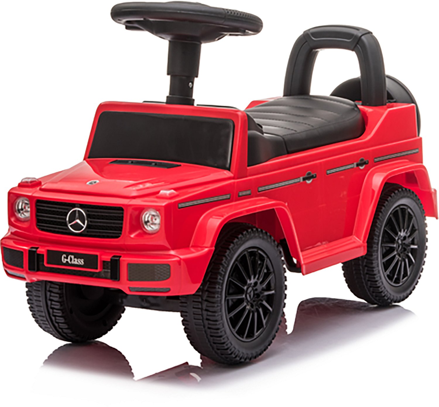 Be the coolest kid at the park with the Best Ride On Cars Mercedes G-Wagon Push Car. The plastic construction affords durability, while the music and horn sounds help keep kids engaged. The under-the-seat storage stashes extra fun objects.