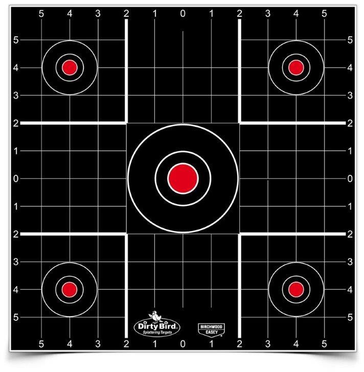 Set up the Birchwood Casey Dirty Bird 12 in Sight-in Targets 12-Pack for indoor or outdoor target practice. These tagboard targets each feature 5 bull's-eye targets with aiming points for open or scoped sights, so you can review different ballistic loads with ease.