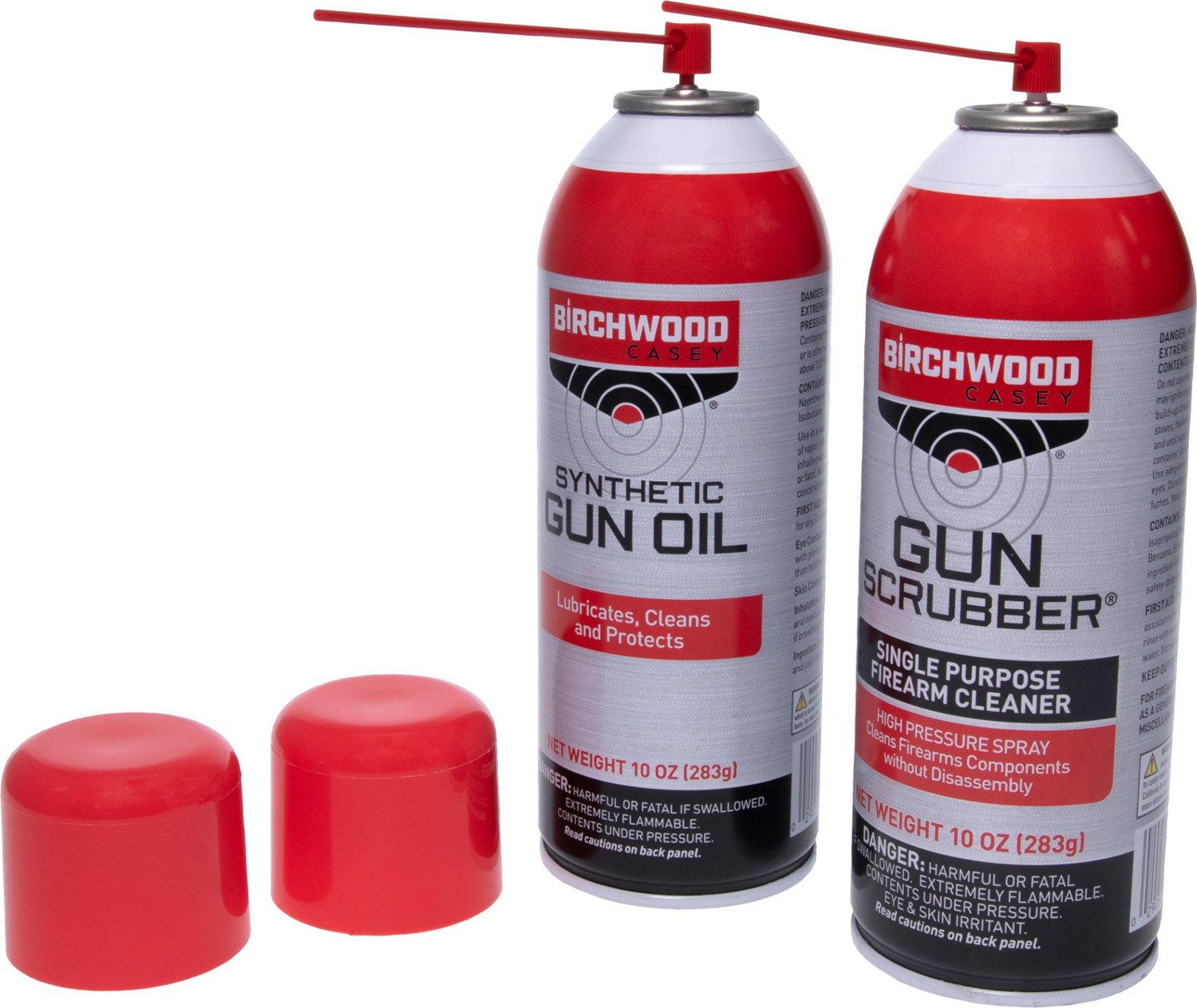 Maintain your collection with the Birchwood Casey Scrubber and Oil 2-Pack. The scrubber and oil are designed to clean and lubricate guns, and they quickly evaporate after use for reduced leftover residue.