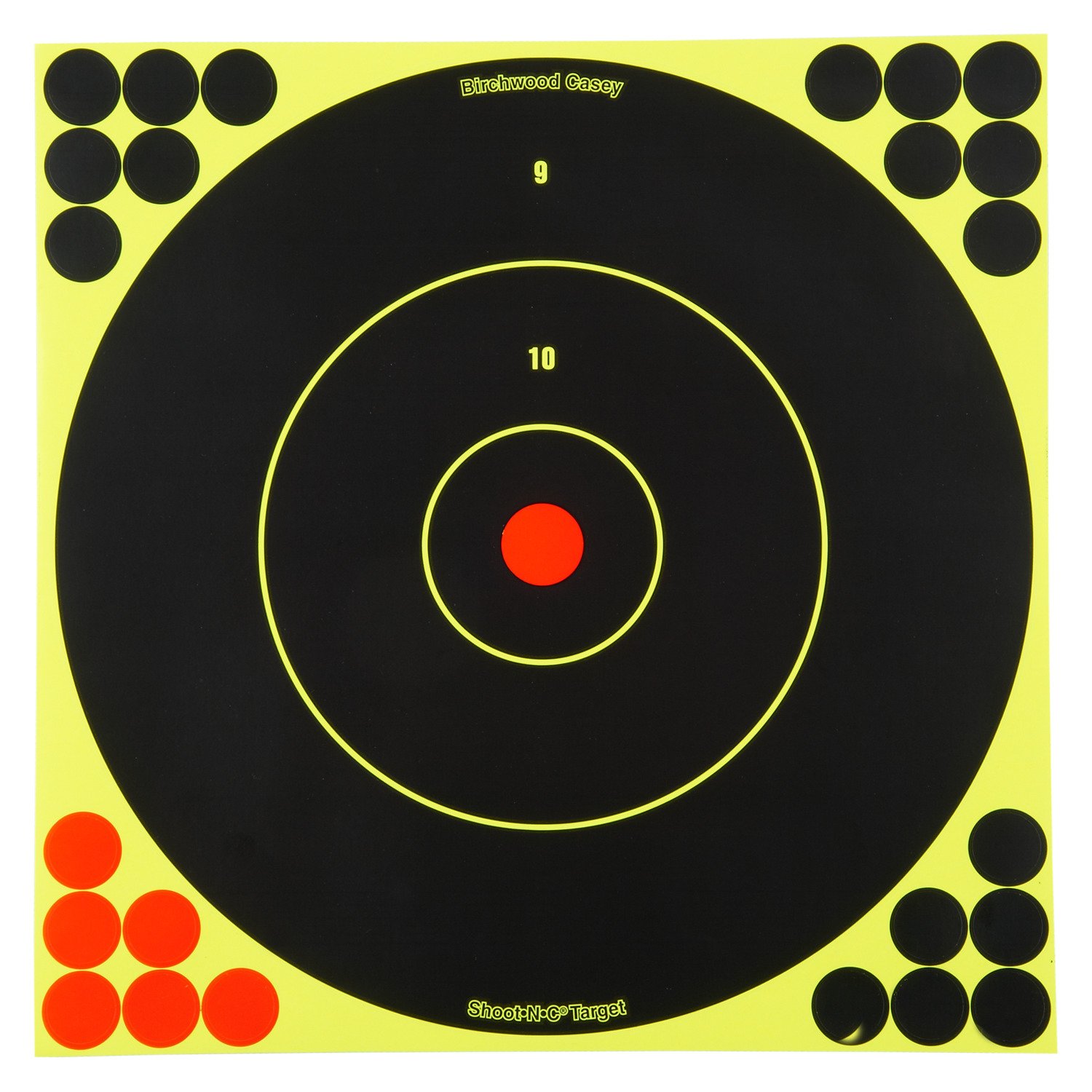 View instant shooting feedback with the Birchwood Casey Shoot-N-C 12" Bull's-Eye Targets 5-Pack. Bullet holes are revealed with brightly colored rings for you to see your accuracy, even in low-light conditions. The targets are made of self-adhesive paper that is easy to mount for both indoor and outdoor use. Great to use with all firearms and calibers. 120 repair pasters included.