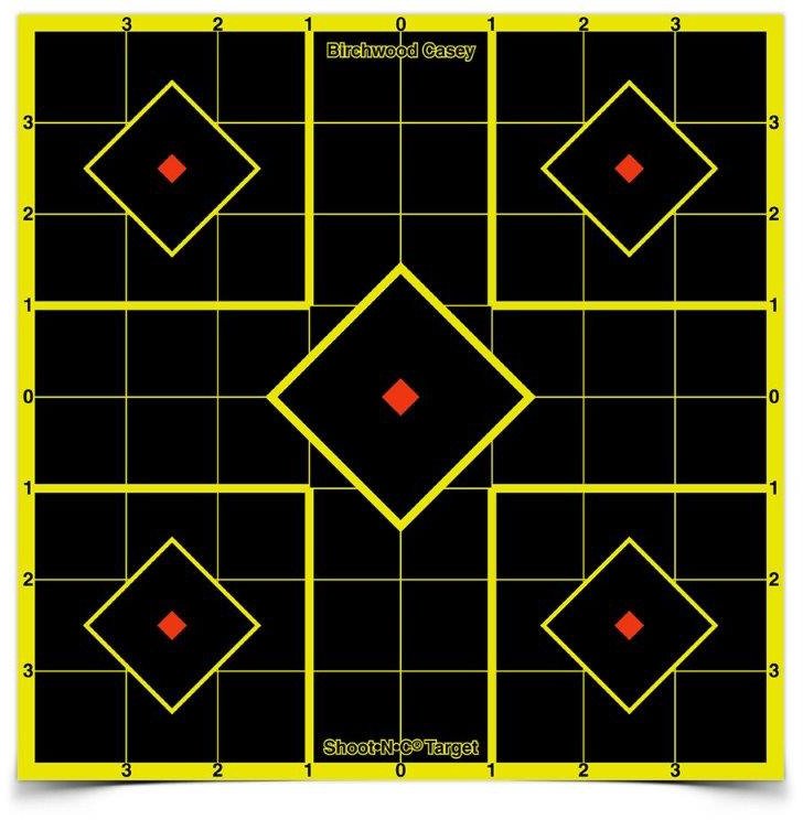 Head to the range and practice your aim with the Birchwood Casey Shoot-N-C 12 in Sight-in Targets 5-Pack. Each sheet has 5 targets with a large target in the center for sighting in and 4 smaller targets for testing the results of ballistic loads or confirmation of sight-in groups. The self-adhesive backing makes setup a breeze.