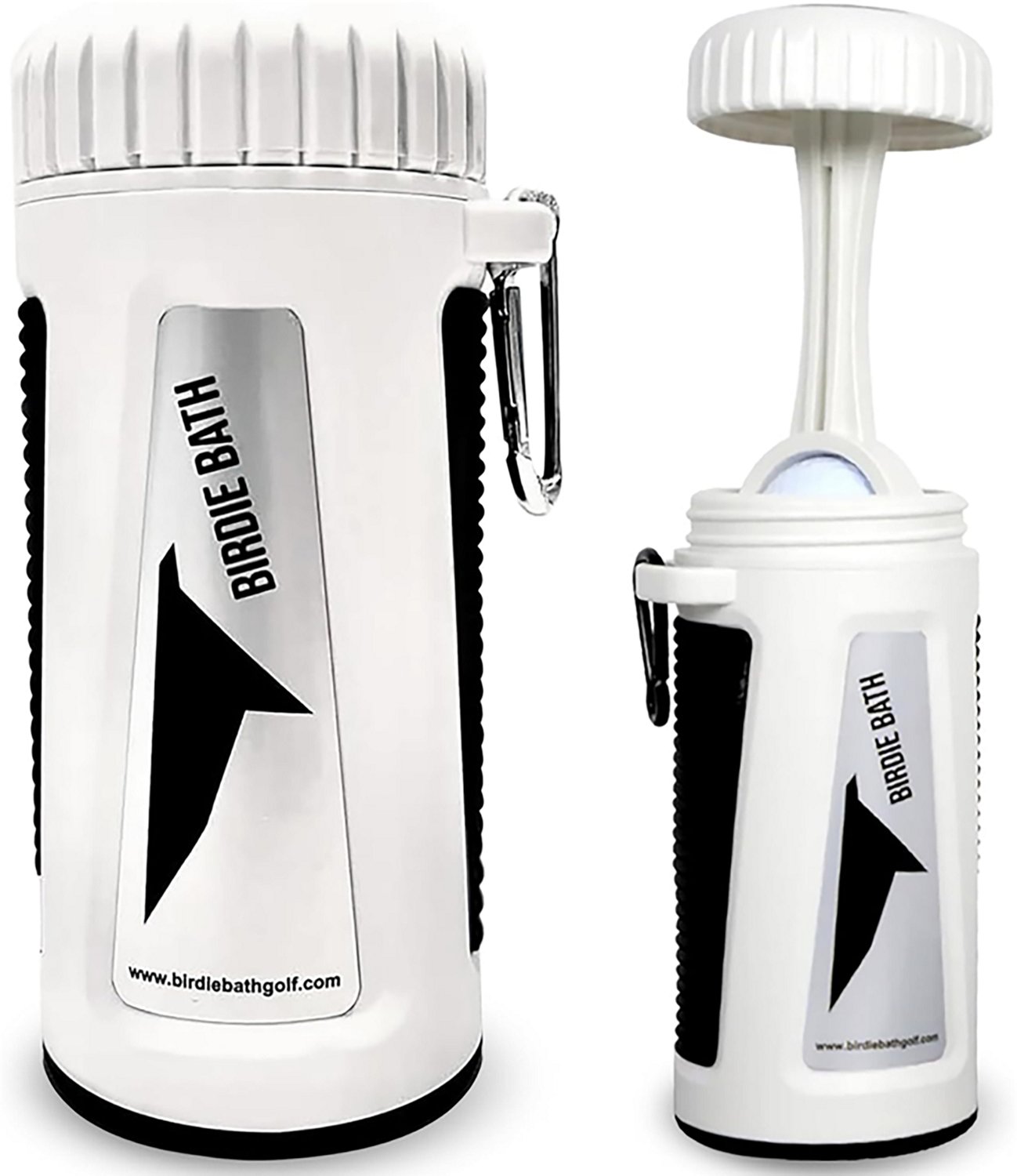Make sure your golf balls are clean on the course by bringing the Birdie Golf Birdie Bath Portable Golf Ball Cleaner. This accessory uses water to wash away dirt and course chemicals and comes with a heavy-duty carabiner to allow attachment to your golf bag.