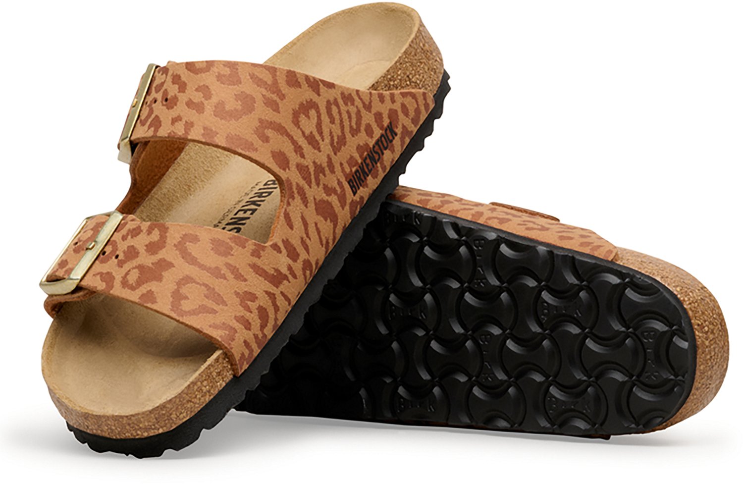 Look your best when you wear the Birkenstock Women's Arizona Sandals. Their skin-friendly, synthetic upper produces a velvety feel. The 2 straps create a timeless design, and their subtle leopard print look adds a fierce touch.