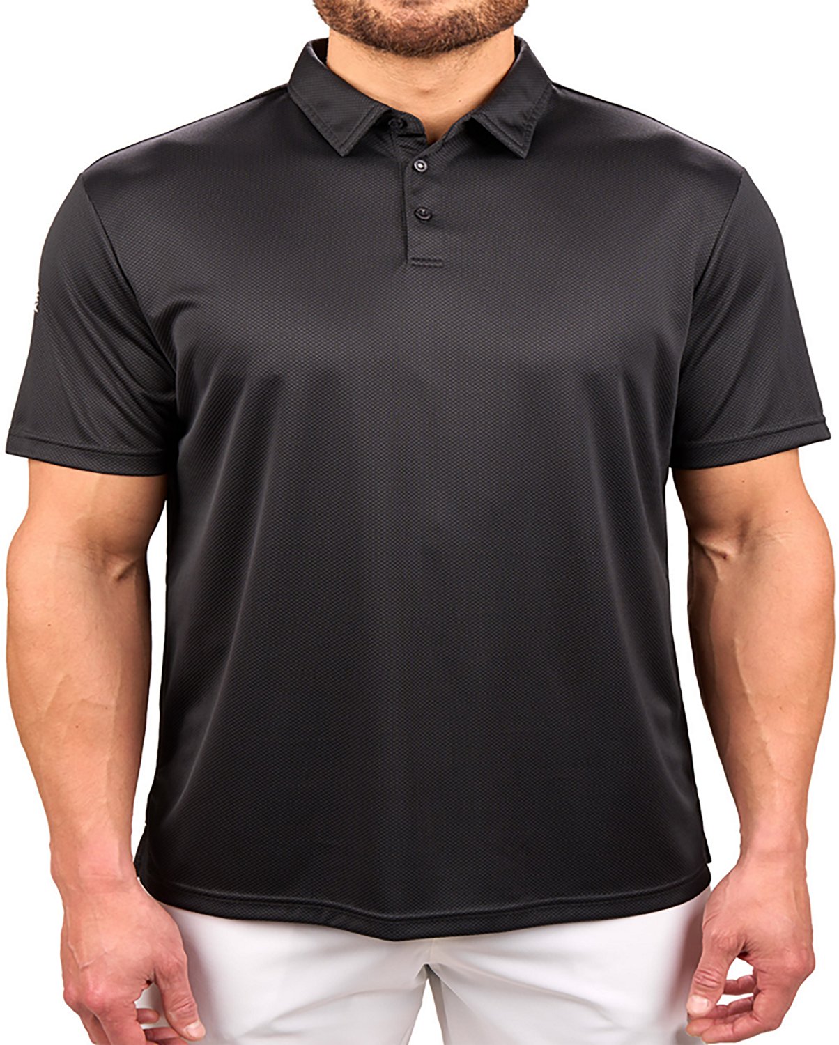 Show off your lucky side with the Black Clover Men's Tom Luck Polo Shirt. This shirt is made of polyester double-knit jacquard fabric for a soft feel, and it has short sleeves and a collar for a comfortable fit.