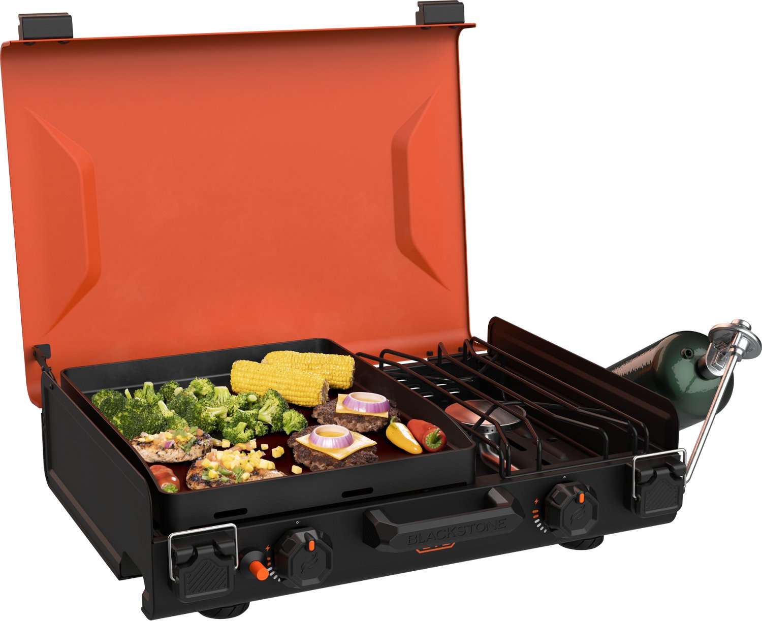 Make meals on the go with the Blackstone 14 x 14-in 2-Burner Propane Camping Griddle. Its 13,000 BTUs cooks meals perfectly for smaller groups. The 196-square inch cooking area is made of cold rolled steel, and its 2 stainless steel burners allow you to cook multiple meals at once. Its non-stick surface provides easy clean up.