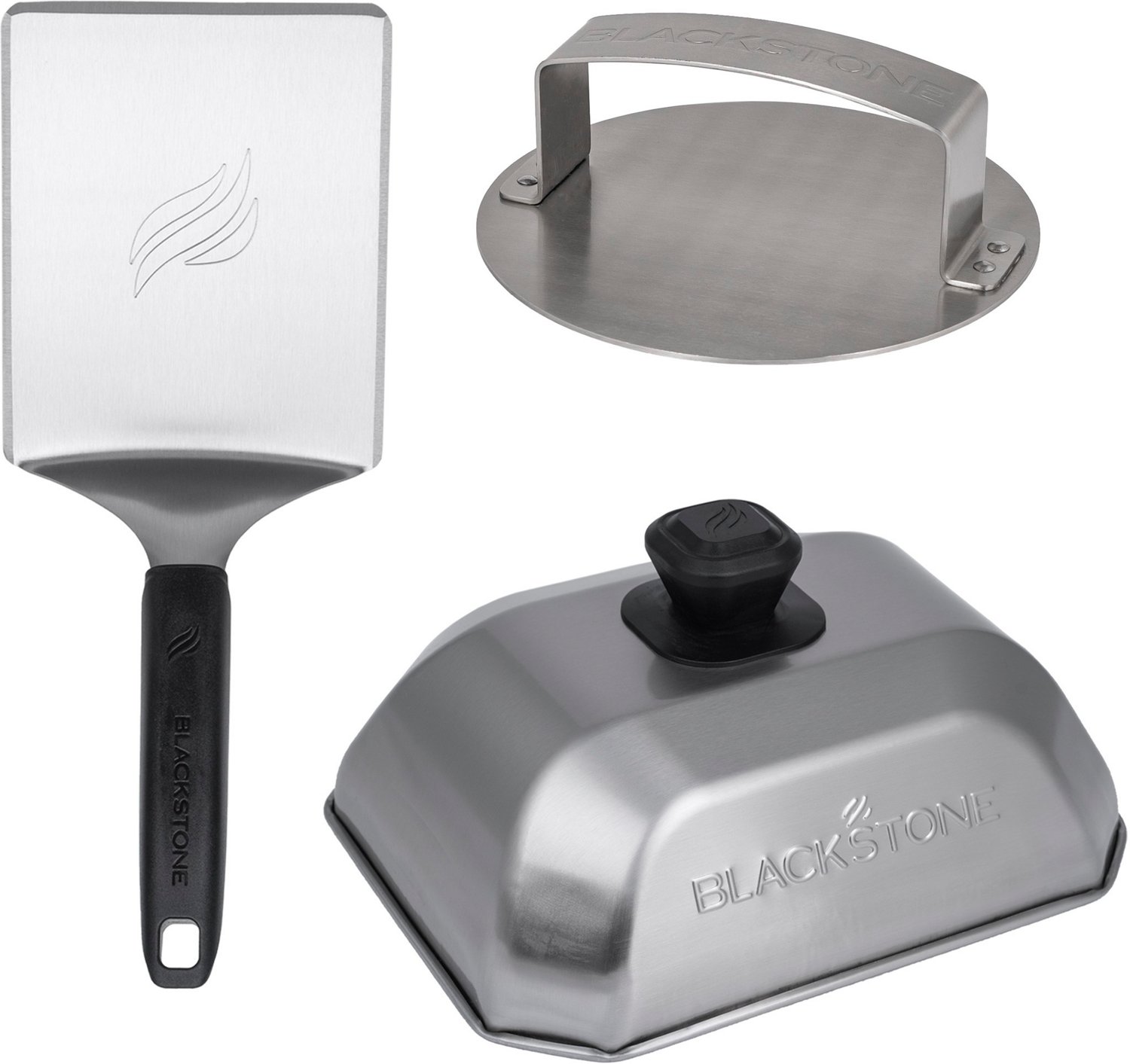 Includes 1 hamburger spatula, 1 basting dome and 1 burger press