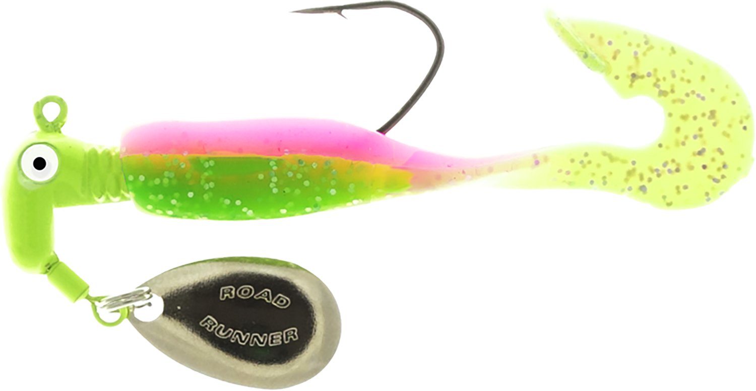 You can attract Crappie to your fishing spot by using the Blakemore Crappie Slab Spanker 1/16 oz Rigged Lure. This lure is designed with a Sickle Hook Road Runner head, a Stroll'R body and a buttoned curly tail to help provide effective movement in the water, and it comes with a 1/0 hook.