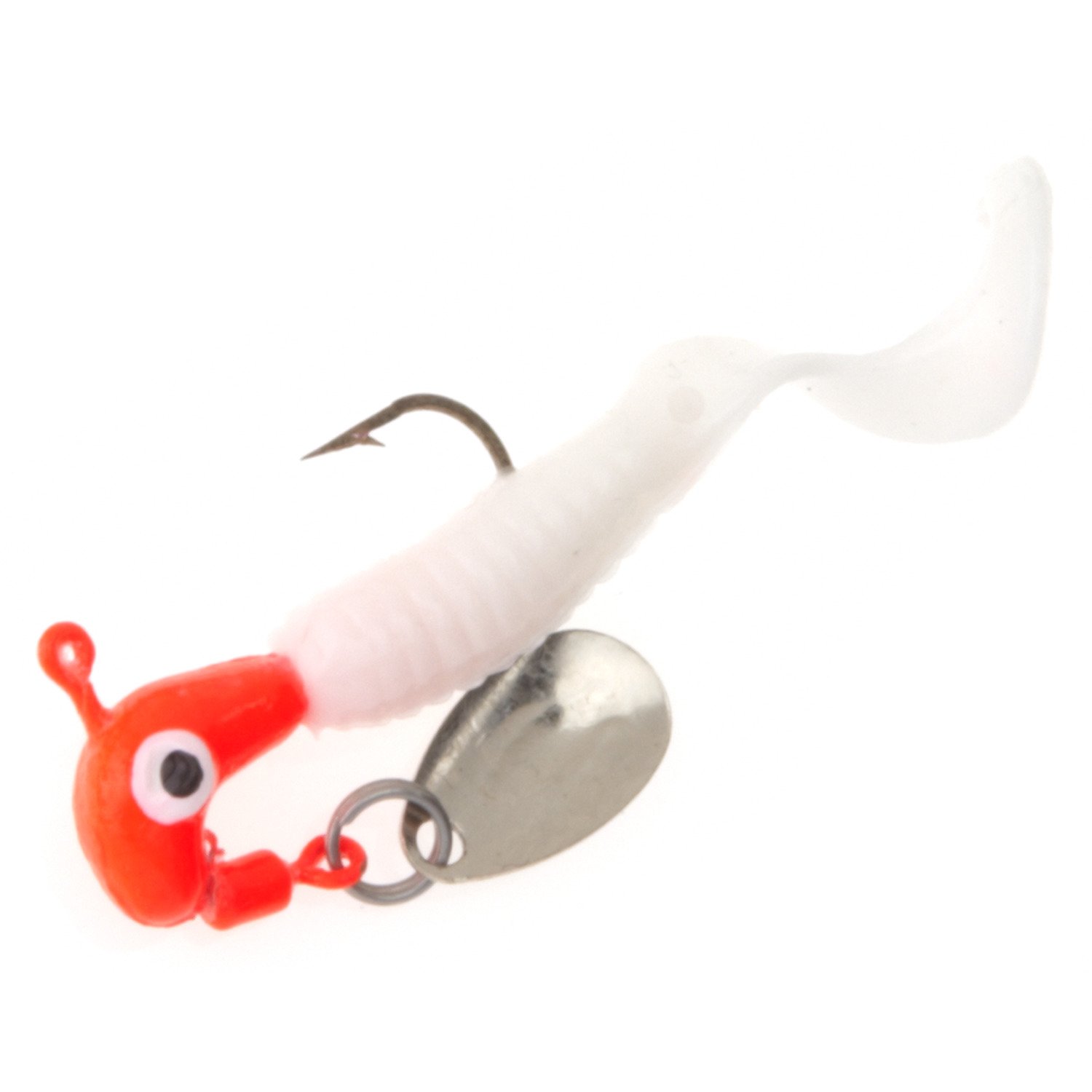 Draw the attention of bluegill and brim with the Blakemore Road Runner® 1/16 oz. Curly-Tail Jigs 2-Pack. These prerigged jigs feature underspin blades for flash, vibration and easy hookups. The curly tail is constructed from soft plastic for an added rippling effect.