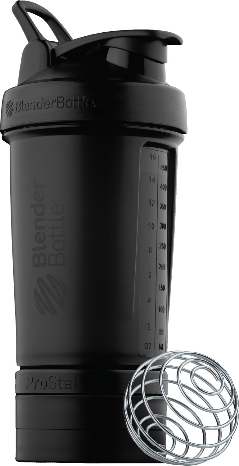 Have your shake and snacks handy with the Blender Bottle ProStack 22 oz Shaker Bottle. The covert tray locks into any jar lid so you can have your pills, powder or snacks with your drink, and the plastic construction delivers resilience use after use.