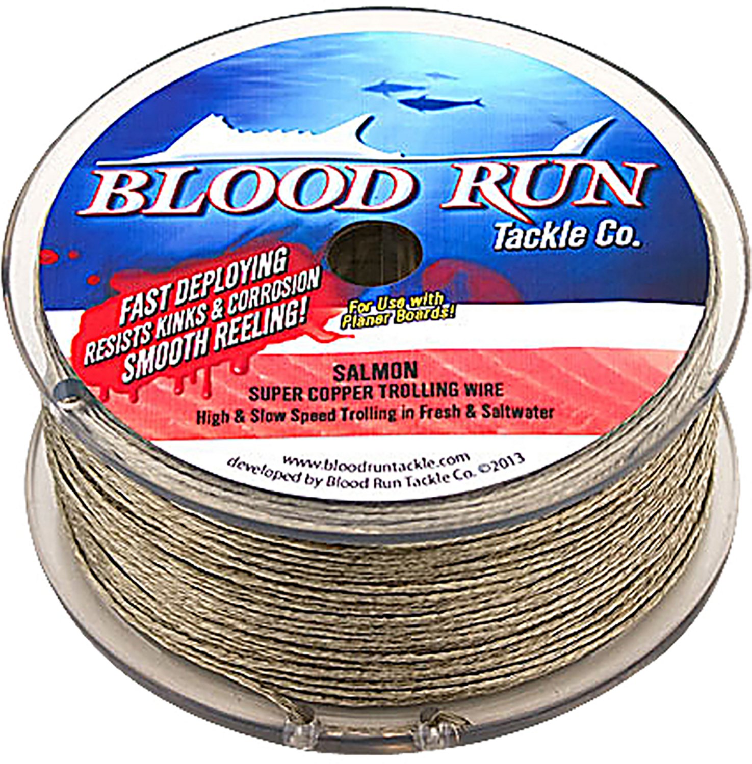 With this Blood Run Tackle Co. 45 lb. 300 feet Braided Copper Trolling Wire on your rig, you can cut through diverse underwater currents and temperatures with ease to reach the fish you're after. Its tin/nickel alloy coating stands up to saltwater corrosion for long-lasting use. Made in USA.