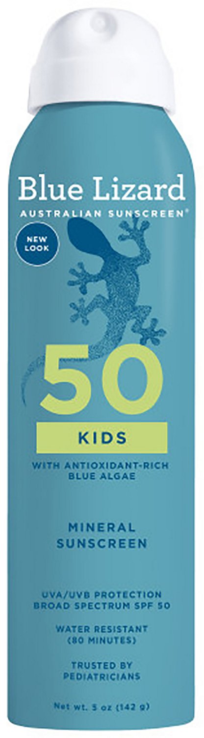 Protect your skin with the Blue Lizard Kids' Mineral SPF 50 Sunscreen 5 oz Spray. The sunscreen provides up to 80 minutes of water resistance, and includes antioxidant-rich blue algae. The spray is free from fragrances, parabens and chemical active ingredients.