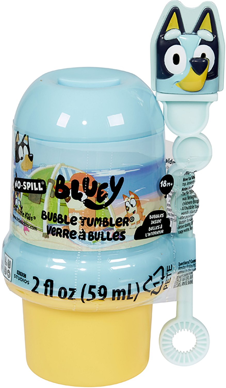 Add to your outdoor fun with the Bluey No-Spill Bubble Tumbler. The plastic material is built for regular use, and the tumbler can be refilled for constant bubble-blowing excitement. The no-spill design reduces the risk of wasting premium bubble solution.