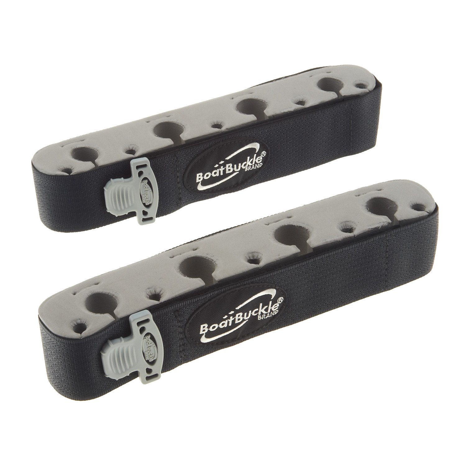 The BoatBuckle™ HLS Vertical Rod Hold-Down Plus mounts firmly to most boat gunwales or deck floors to provide convenient storage for up to 8 rods. The hold-down is constructed from foam and polypropylene web for durability and offers concealed mounting hardware with mounting screws that recess into molded rubber grommets for rod protection. The Sur-Grip release tab allows for a secure hold.
