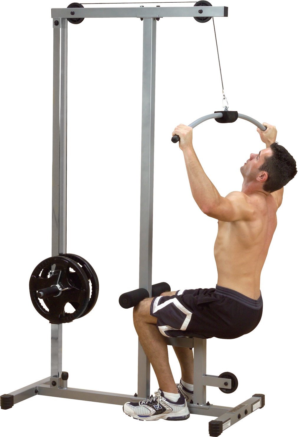 The Body-Solid Powerline Lat Machine is great for exercises that focus on your biceps, lats and triceps, including lat pulldowns, triceps press downs, seated rows, upright rows and more. With heavy gauge steel construction and an electrostatically applied powder-coat finish, this machine features nylon bushings that provide smooth operation and dual-position 8" foam rollers to hold you in place. Lat bar and low row bar included.