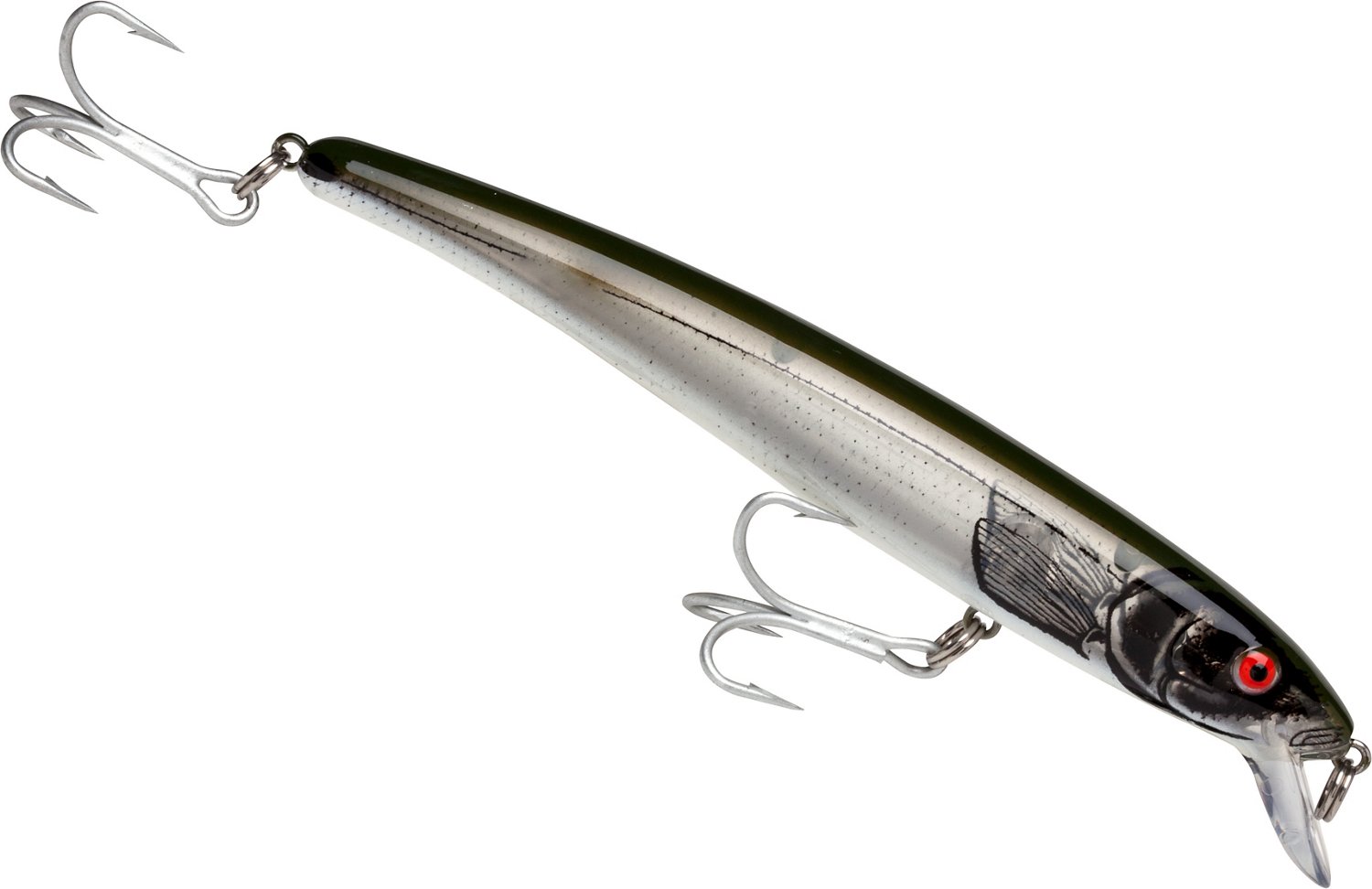 Known for its successful death wiggle, the BOMBER Lures Magnum Long A 1-1/2 oz Saltwater-Grade Crankbait can withstand impacts with its durable, high-tensile polycarbonate body and saltwater-grade hardware as you angle for redfish. 1-1/2 ounces. 7 inches. Hook size: 4/0.